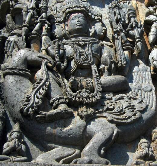 Сын Шивы Сканда на полуптице-полудраконе, похожем на василиска. Халебид, Индия