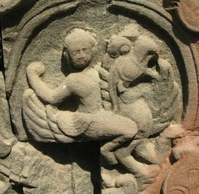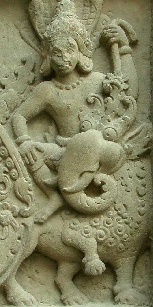 Всадник на полуптице-полудраконе, напоминающем василиска. Та Пром, Ангкор, Камбоджа