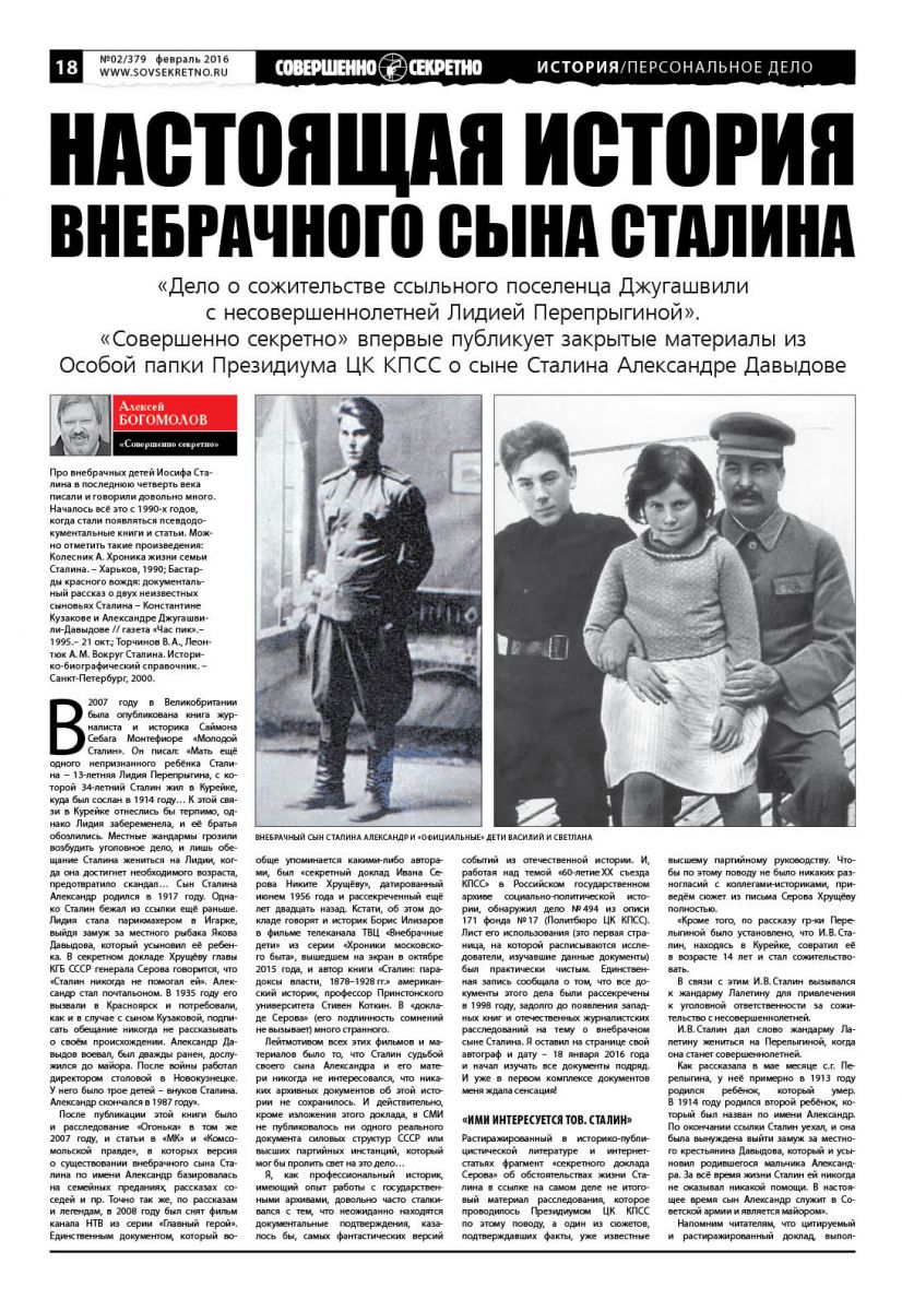 «Совершенно секретно» впервые публикует закрытые материалы из Особой папки Президиума ЦК КПСС о сыне Сталина Александре Давыдове