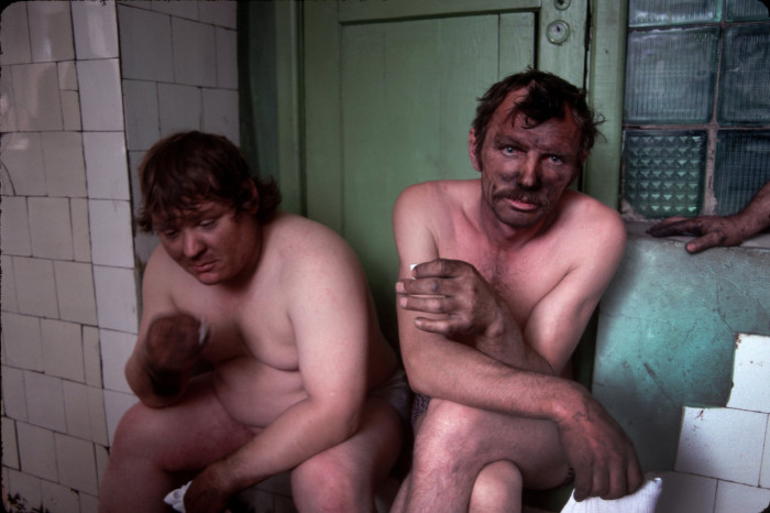 Шахтеры в бане после тяжелого рабочего дня. Россия, Новокузнецк, 1991 год.