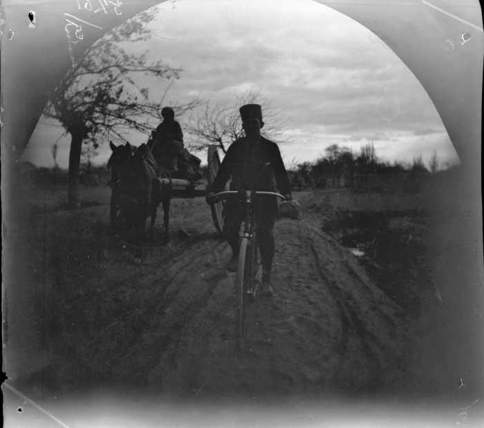 Томас Аллен, едущий на велосипеде по дороге в Бухару.