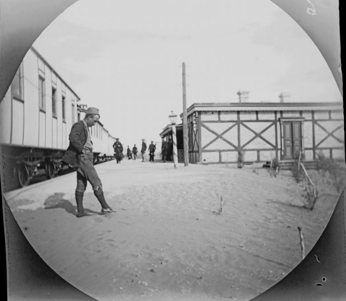Сцена на железнодорожном вокзале на Закаспийской железной дороге.