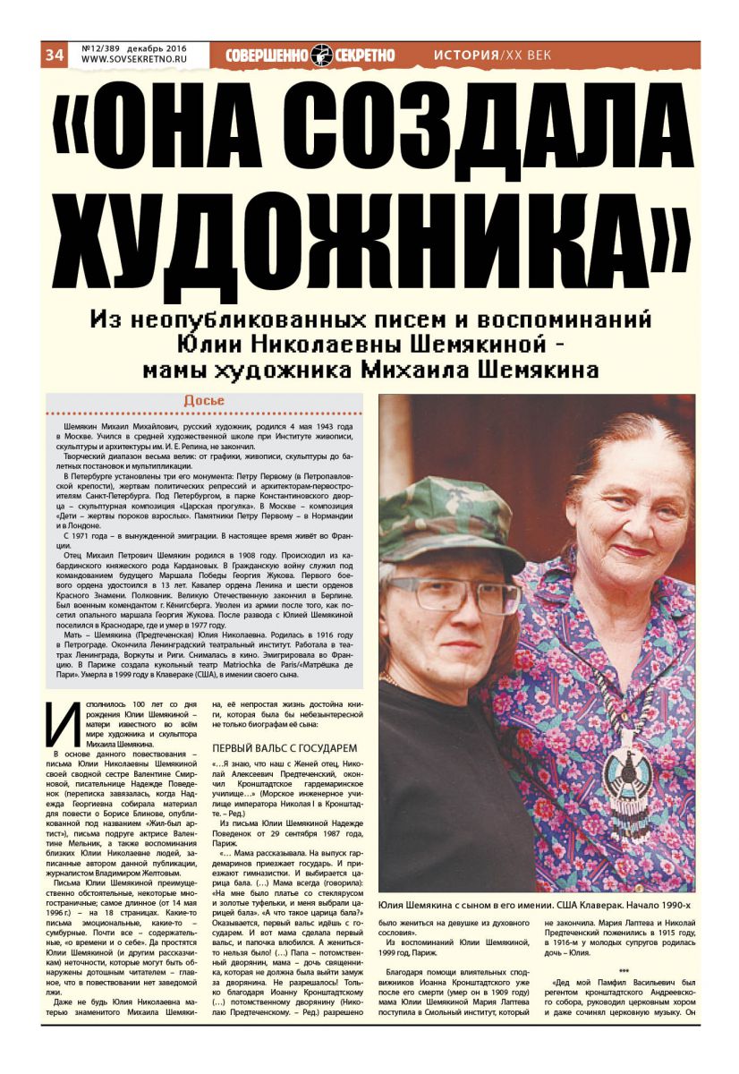 Даже не будь Юлия Николаевна матерью знаменитого Михаила Шемякина, её непростая жизнь достойна книги, которая была бы небезынтересной не только биографам её сына: