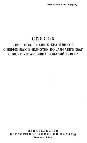 На самом деле, книга эта – замечательное пособие для сотрудников зарубежных разведок. В ней собрана вся литература, которую считали «идеологически неверной», антисоветской или, выражаясь современным языком, экстремистской. А знание того, что главный противник (в данном случае СССР) считает наиболее опасным для себя – это руководство к действию, показывающее, какие направления подрывной работы могут быть наиболее важными.