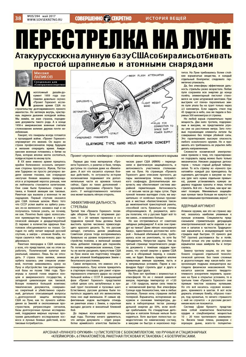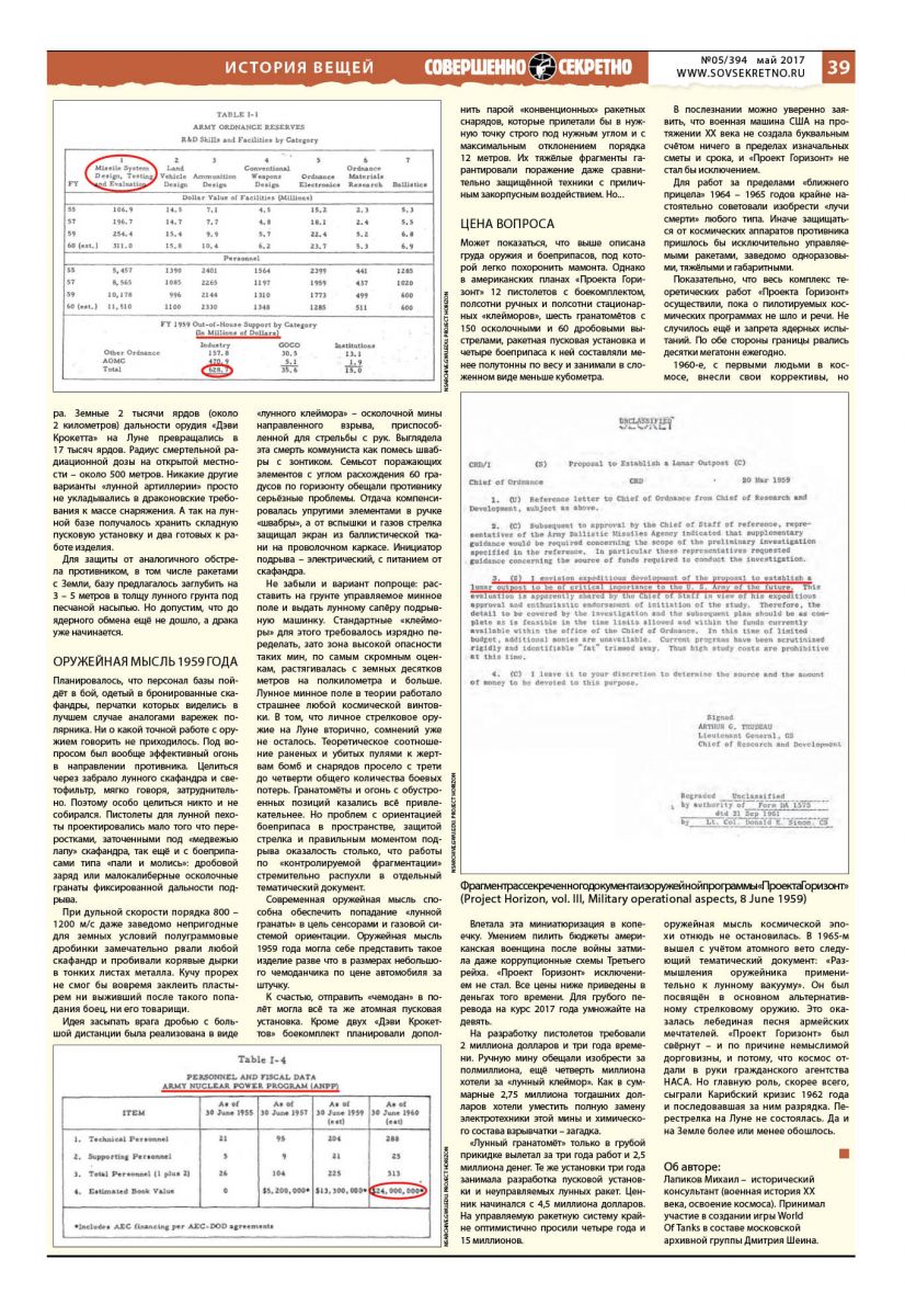Первые два тома материалов «Проекта Горизонт», о ракетах и базе, теперь доступны по ссылкам даже на «Википедии». А вот что касается «лунных боевых действий», то энтузиасты истории космонавтики поднимают эти дополнительные части из архивов только сейчас. Одно из таких дополнений – оружейная программа «Проекта Горизонт». У неподготовленного читателя она может вызвать лёгкую оторопь.