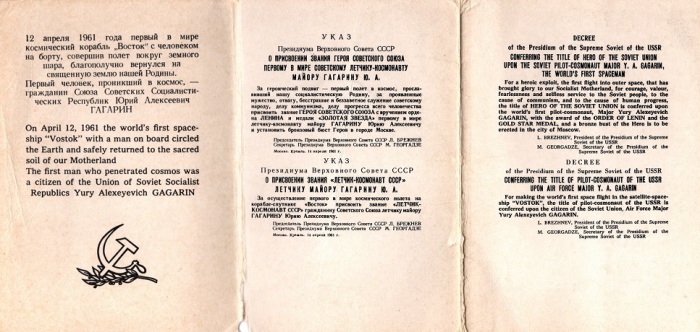 Указ о присвоении звания Героя Советского Союза майору Юрию Гагарину. | Фото: liveinternet.ru.