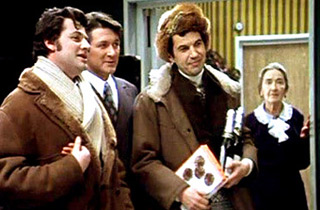 | Александр Ширвиндт, Александр Белявский, Георгий Бурков и Любовь Добржанская, «Ирония судьбы, или С легким паром!», 1975 год |