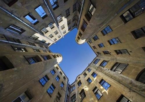 Строить дома «сплошной фасадой» распорядился еще Петр, но земля стремительно дорожала, и классическое П-образное здание стало расточительством. Сначала до 5-7 этажей надстраивали уличный фасад. Там вокруг лестничных клеток располагались комфортабельные квартиры для высших слоев общества с швейцарами, коврами на лестницах и отдельными санузлами. Затем перестраивали служебные постройки, стоящие по периметру двора. А потом уже и сам двор стали перегораживать еще одним, двумя, а то и тремя узкими домами-пеналами. Причем, стены, выходящие на соседний участок, по строительному уставу не могли иметь окон, поэтому квартиры в таких домах были односветовыми, с коридорной системой и общим туалетом. Здесь жили учителя, чиновники, небогатое купечество. Степень престижности жилья определялась тем, жил ты в первом, втором или третьем дворе. Вот – типичные «колодцы»