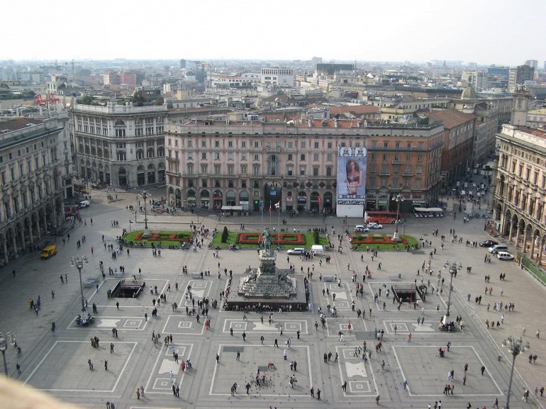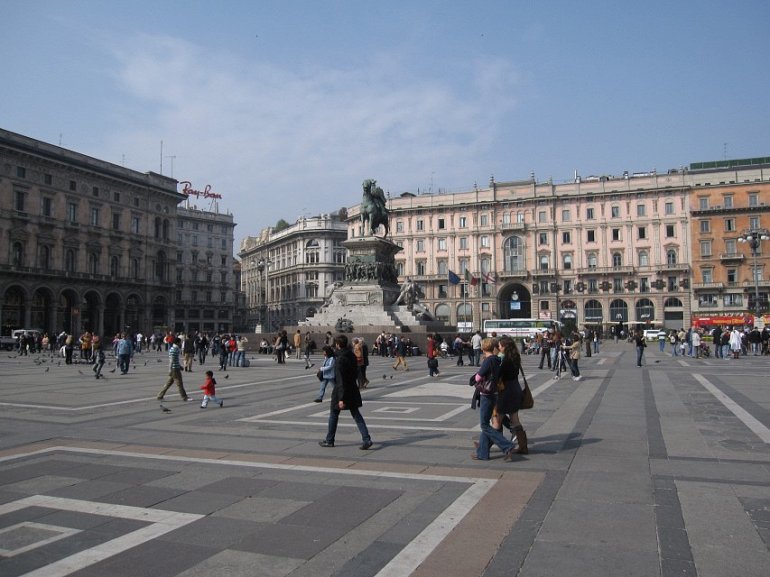 Пьяцца Дуомо — самая красивая площадь Милана во власти великолепного фасада собора Дуомо. В центре площади установлен памятник в честь первого короля объединенной Италии. Уже в течение римской эры эта область была сердцем Милана. Во время Средневековья здесь появилось несколько церквей и Дуомо стала центром религиозной жизни в Милане. Сегодня широкая Площадь Дуомо является популярным местом для собраний, постоянно переполняясь туристами и местными жителями.