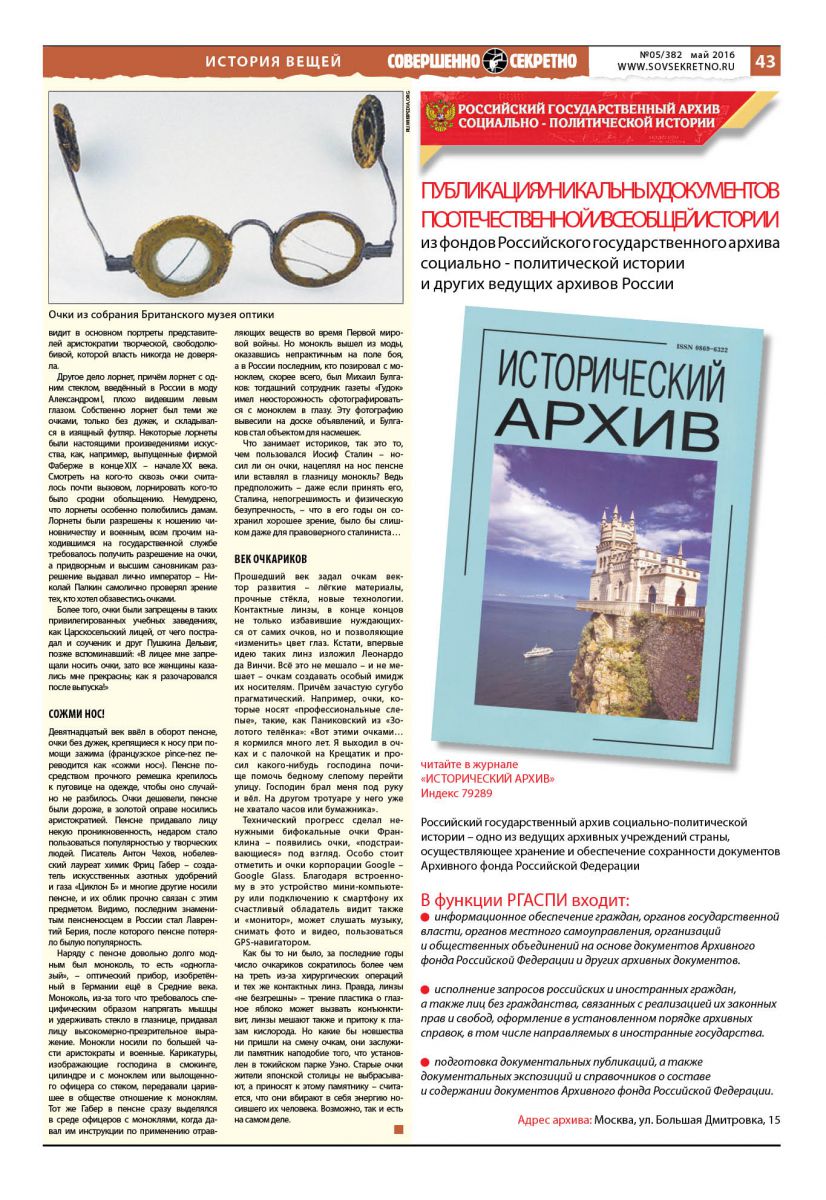 Очки пошли – нет, не в народ, это случилось лишь в ХХ веке, – в аристократическую среду. Прежде выказывавшие презрение всяким учёным и прочим всезнайкам аристократы перестали стесняться очков. Уже не только в тиши кабинетов, но и в салонах очки стали вполне привычным атрибутом. С очками на носу знатные особы теперь позировали художникам, что прекрасно было продемонстрировано на выставке «А ещё в очках!» в Музее Пушкина. Однако в России, отличавшейся и отличающейся по сей день от остального мира по неким глубинным, иногда с трудом поддающимся непротиворечивому описанию основаниям, очки оставались предметом опасным, свидетельствующим о вольнодумстве и своеволии. Ведь на той же выставке посетитель видит в основном портреты представителей аристократии творческой, свободолюбивой, которой власть никогда не доверяла.