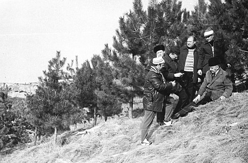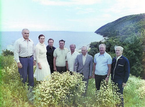 Зять Косыгина Джермен Гвишиани и его жена Людмила Косыгина (слева) и Алексей Косыгин с охраной и обслугой. Крым
