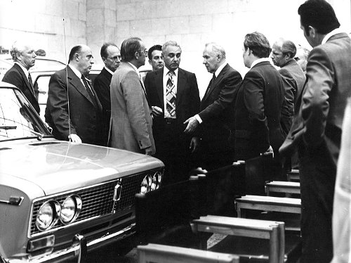 Косыгин осматривает первый экземпляр автомобиля ВАЗ-2103