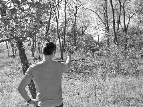 Свидетель студент Константин показывает, в каком направлении скрылся мужчина, которого они с девушкой видели на месте преступления