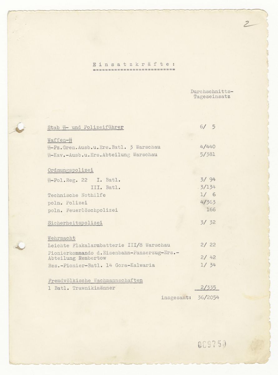 ОПЕРАТИВНЫЕ СИЛЫ, ПРИВЛЕЧЕННЫЕ РУКОВОДСТВОМ СС ДЛЯ ПОДАВЛЕНИЯ ЕВРЕЙСКОГО ВОССТАНИЯ В ВАРШАВЕ 19 АПРЕЛЯ 1943 ГОДА