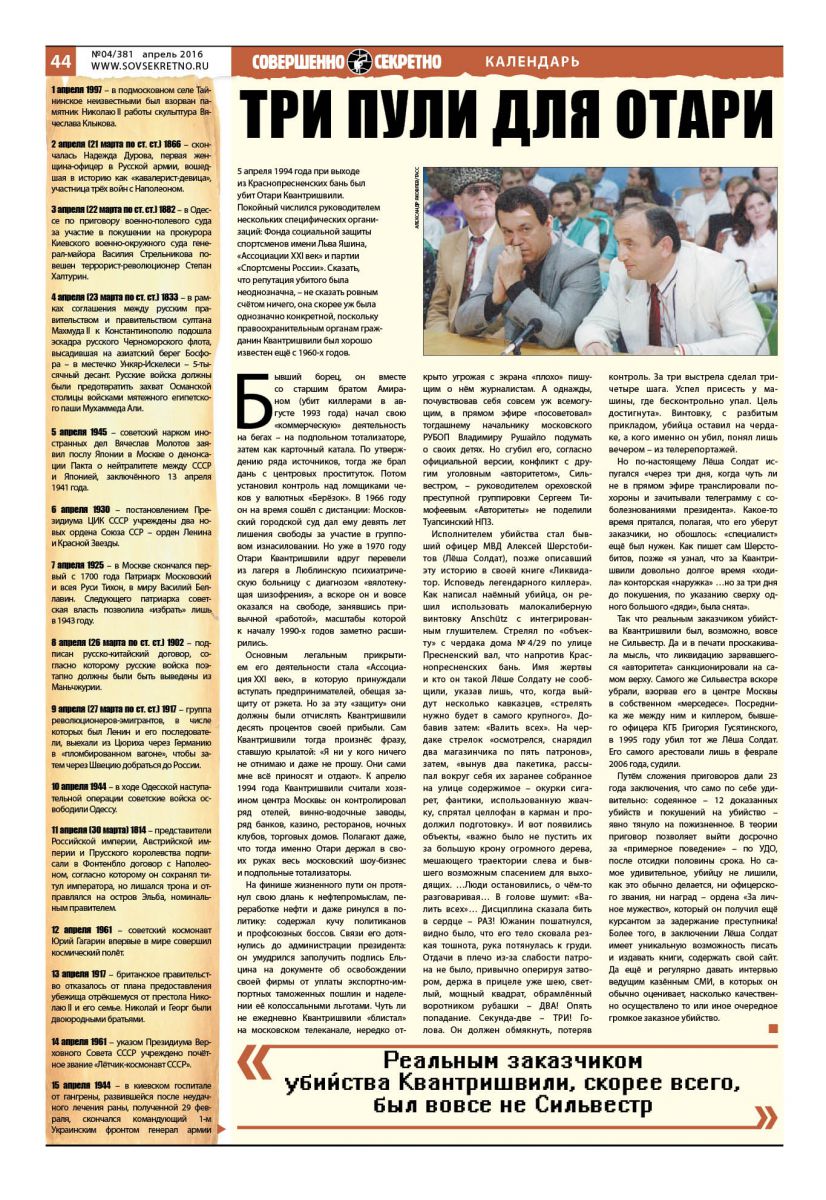 Но опятьже неверится, что крышевание банкиров икоммерсантов, бывшее обычной практикой силовых структур, могло стать реальной причиной снятия столь высокопоставленного генерала. Как полагают, увольнение инициировал руководитель Администрации Президента РФ Анатолий Чубайс, убедивший своего хозяина, что начальник столичного УФСБ неслишком лоялен и, страшно сказать, якобы даже водит дружбу сопальными Коржаковым иБарсуковым.