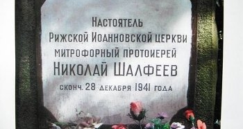 А святой человек, настоятель православной церкви Николай Шалфеев, пострадал таки за свою доброту. Кто-то донес немцам, что тот тайно помогал спасать еврейских детей из находящегося по соседству с храмом Рижского гетто. В гестапо батюшку продержали три месяца, а когда выпустили, он через три дня умер, 28 декабря 1941 г. сердце не выдержало. Похоронили настоятеля на том же Ивановском кладбище, неподалеку от погребенных им советских воинов.