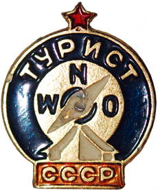Значок был учрежден 26 марта 1939 года и представлял собой круглую темно-синюю эмблему, которую венчала красная звезда, а основанием служила аббревиатура СССР, заключенная в прямоугольную рамку. В центральной части размещена стрелка компаса и латинские буквы, обозначающие направление сторон света W, N, O. Немного ниже схематическое изображение походной брезентовой палатки, сверху надпись ТУРИСТ. Заметим, что для каждой категории туристов выпускалась своя разновидность значка. Так, у туристов-велосипедистов на обратной стороне знака гравировался велосипед, у водников парус, у лыжников лыжня. На значках пеших туристов никаких надписей на реверсе не предусматривалось.