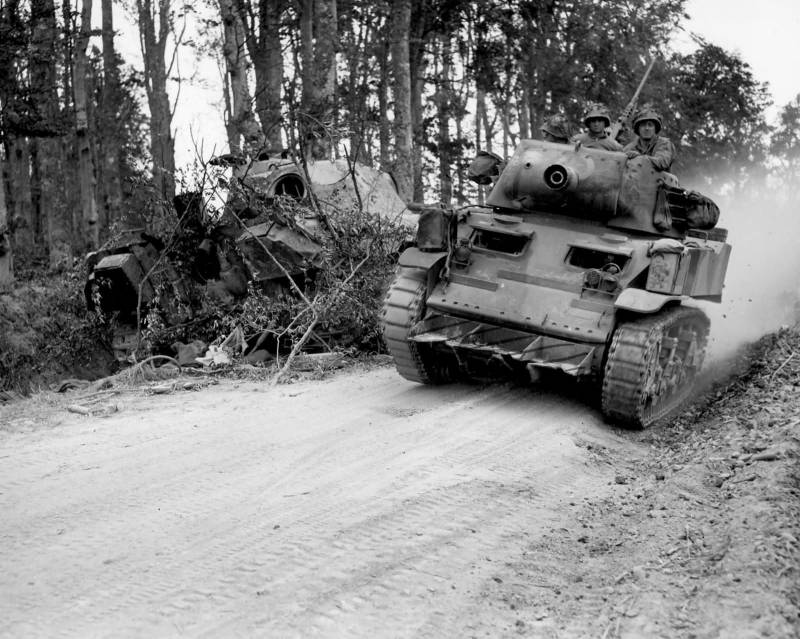 Одной из самых массовых американских самоходных гаубиц периода Второй мировой войны стала самоходка Howitzer Motor Carriage M8, также известная как M8 Scott. С сентября 1942 года по январь 1944 года американская промышленность выпустила чуть менее 1800 самоходных гаубиц данного типа. Легкая по массе САУ была создана на базе танка M5 «Стюарт» и вооружалась 75-мм гаубицей, созданной на базе легкой полевой гаубицы M1, принятой на вооружение в 1927 году.