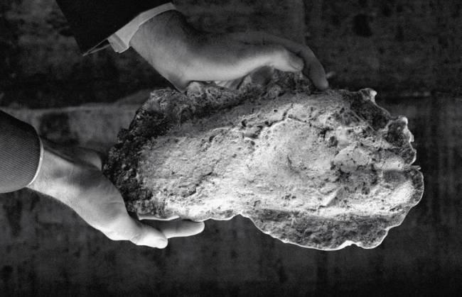 На фото: якобы отпечаток ноги снежного человека, найденный исследователем Жанной Кофман на Северном Кавказе в марте 1978 года.