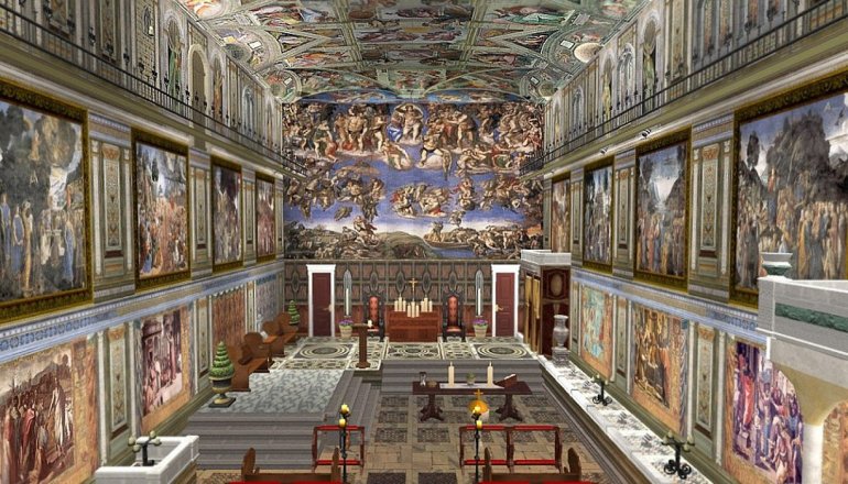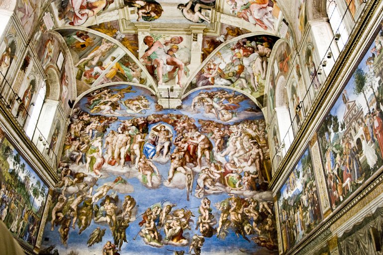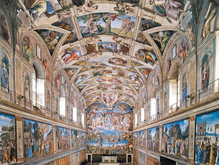 Благодаря экстраординарным талантам Микеланджело Буонарроти (1475-1564) Сикстинская капелла в Ватикане стала одной из самых известных картинных галерей в западном мире. Известный Сикстинский потолок Микеланджело изображает сцены Творения в драматических и динамичных деталях, в то время как Страшный суд на алтаре не менее поразителен. Как будто этого было недостаточно, боковые стены капеллы покрыты выдающимися ренессансными фресками других художников с изображением библейских сцен и Пап Римских. Но Сикстинская капелла — больше, чем просто комбинация чудес искусства. Это символ проявления папской власти и место, в котором по сей день проходят папские выборы.