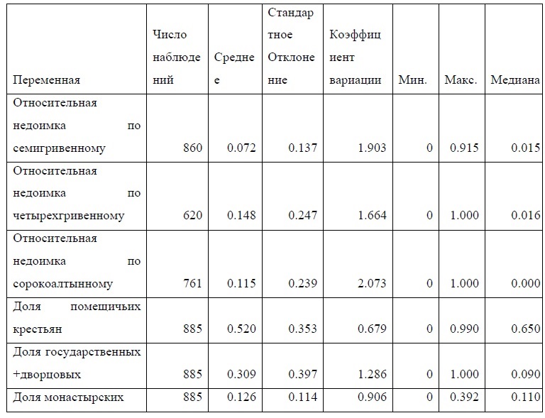 Таблица 1. Дескриптивная статистика за весь период (для уездов и провинций, в состав которых не входят учтенные уезды)