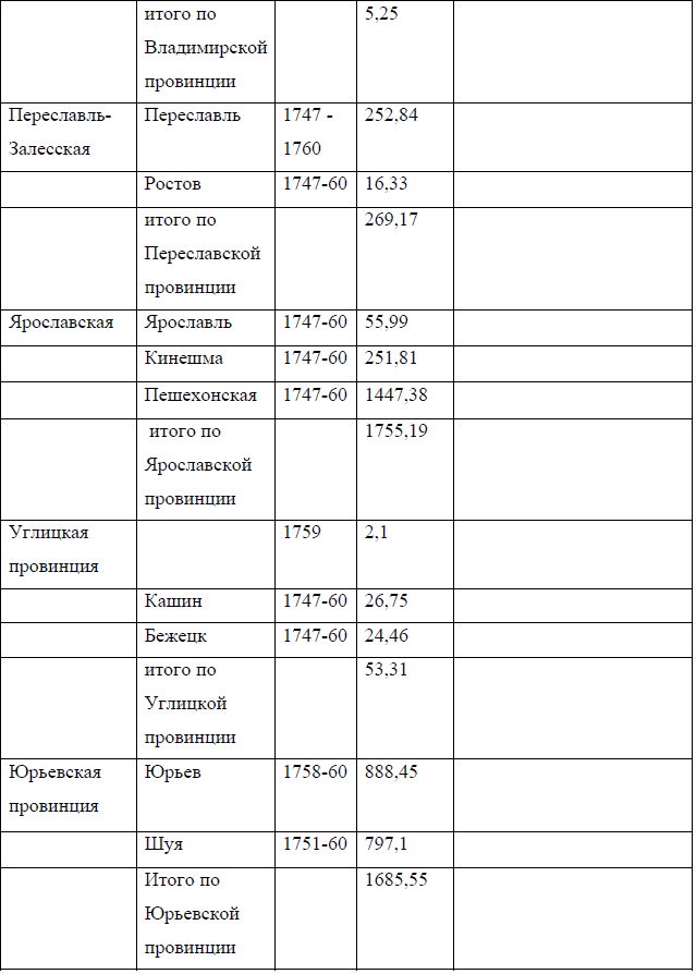 – Вологодская провинция: по всей провинции и по обоим уездам, входившим в нее (Вологодскому, Тотемскому);