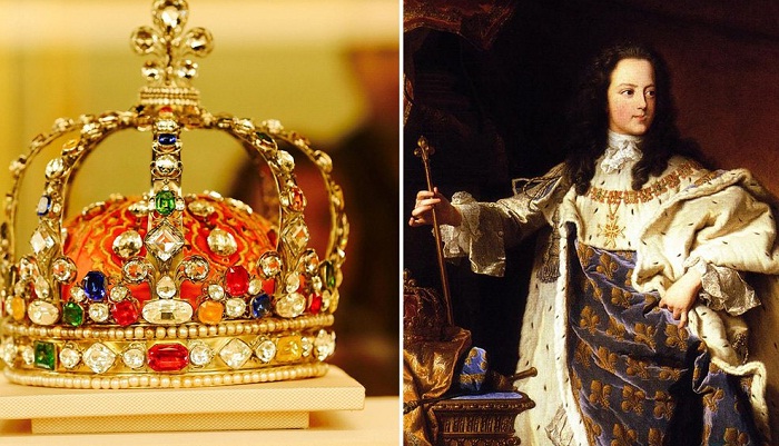 До Людовика XV французских королей, включая и Людовика XIV, венчали в Реймском соборе довольно скромной короной Карла Великого.