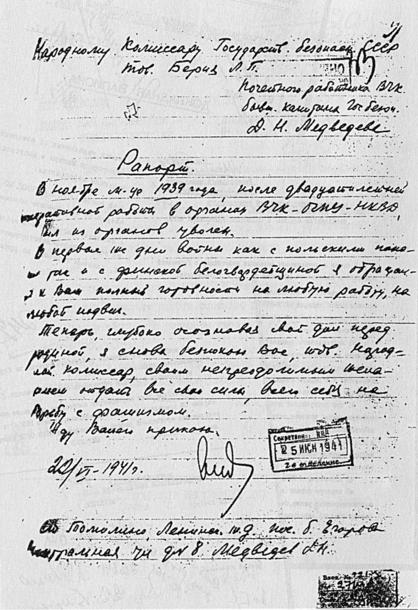 К НАЧАЛУ ВОЙНЫ КАПИТАН ГОСБЕЗОПАCНОСТИ ДМИТРИЙ МЕДВЕДЕВ УЖЕ БЫЛ ВЫКИНУТ ИЗ ОРГАНОВ, ПОСКОЛЬКУ СЧИТАЛСЯ «НЕБЛАГОНАДЕЖНЫМ», «ПОДОЗРИТЕЛЬНЫМ» И ОЖИДАЛ АРЕСТА