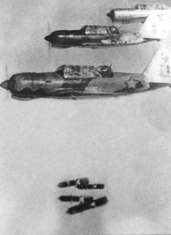 Звено ближних бомбардировщиков Су-2 выполняет бомбометание. Южный фронт, 1942 год. Фото с сайта http://www.wunderwafe.ru