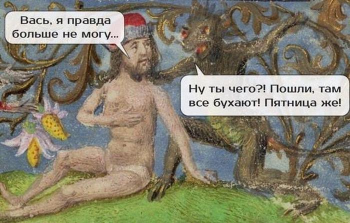 Для тех наших читателей, кому нравятся забавные иллюстрации из серии Сумасшедшее Средневековье мы подготовили новую подборку – фрагменты старинных картин с саркастическими подписями на новый лад. Смотрите, улыбайтесь! И не стоит относиться к этим картинкам чересчур серьёзно.