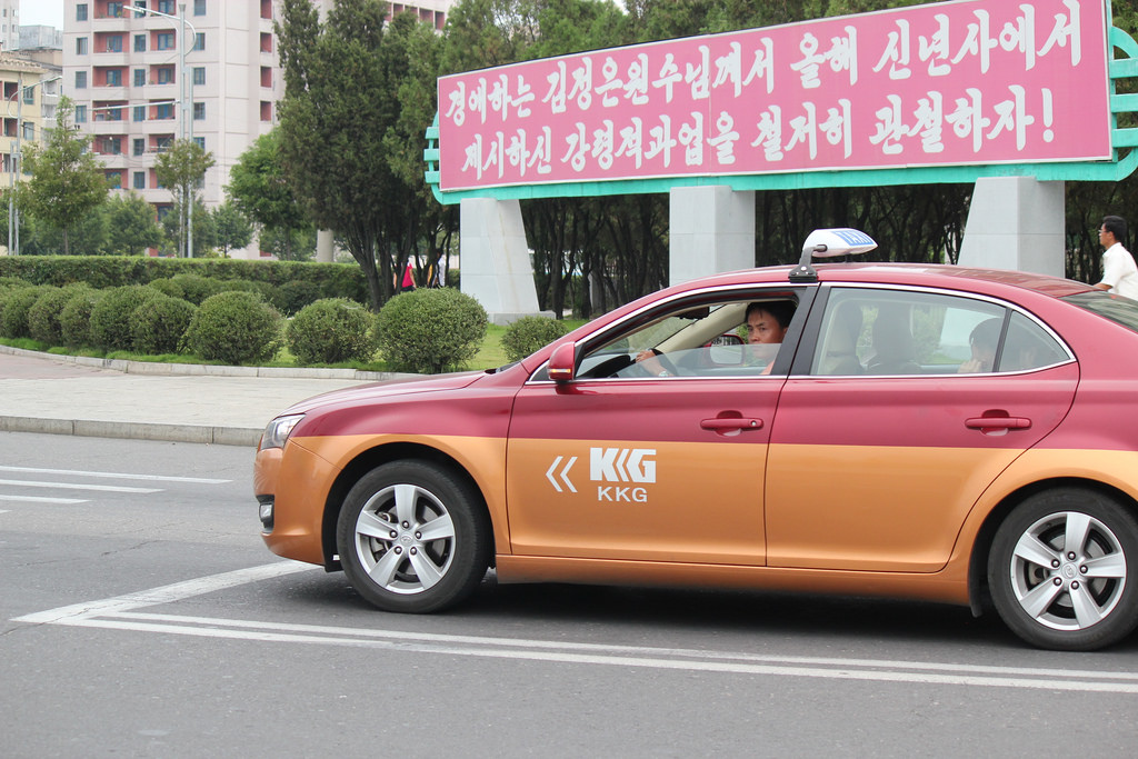 Ровно год назад, летом 2014 года, пхеньянцы начали обращать внимание на новенькие такси, появившиеся на улицах столицы. Машины было трудно не заметить из-за их яркой окраски. На темно-бордовых и золотистых седанах бросались в глаза большие буквы, обозначающие название компании KKG.