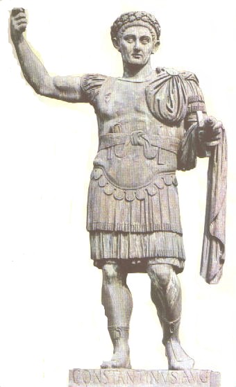 Язычники-римляне пытались вытравить из памяти человечества любые воспоминания о Христе. Так, император Адриан (117 — 138) приказал засыпать землей Гроб Господень (пещеру, где Иисус был похоронен), а на искусственном холме поставить капище Венеры и статую Юпитера. Через 200 лет Гай Флавий-Валерий Константин Германикус, прозванный позже Константином Великим, стал первым императором, принявшим христианство. Произошло это не сразу. Как не сразу стал он и самодержцем. Сначала он был поставлен на царство легионерами. Титул Germanicus молодой цезарь получил за выдающиеся победы над германскими племенами. Но пока солдатский император воевал, сенат избрал цезарем Максеция, интригана и бездарного правителя. Конфликт был неминуем. И хотя 190-тысячное войско Максеция почти в два раза превосходило по численности полки Константина, победил бесценный боевой опыт и тактический талант последнего.