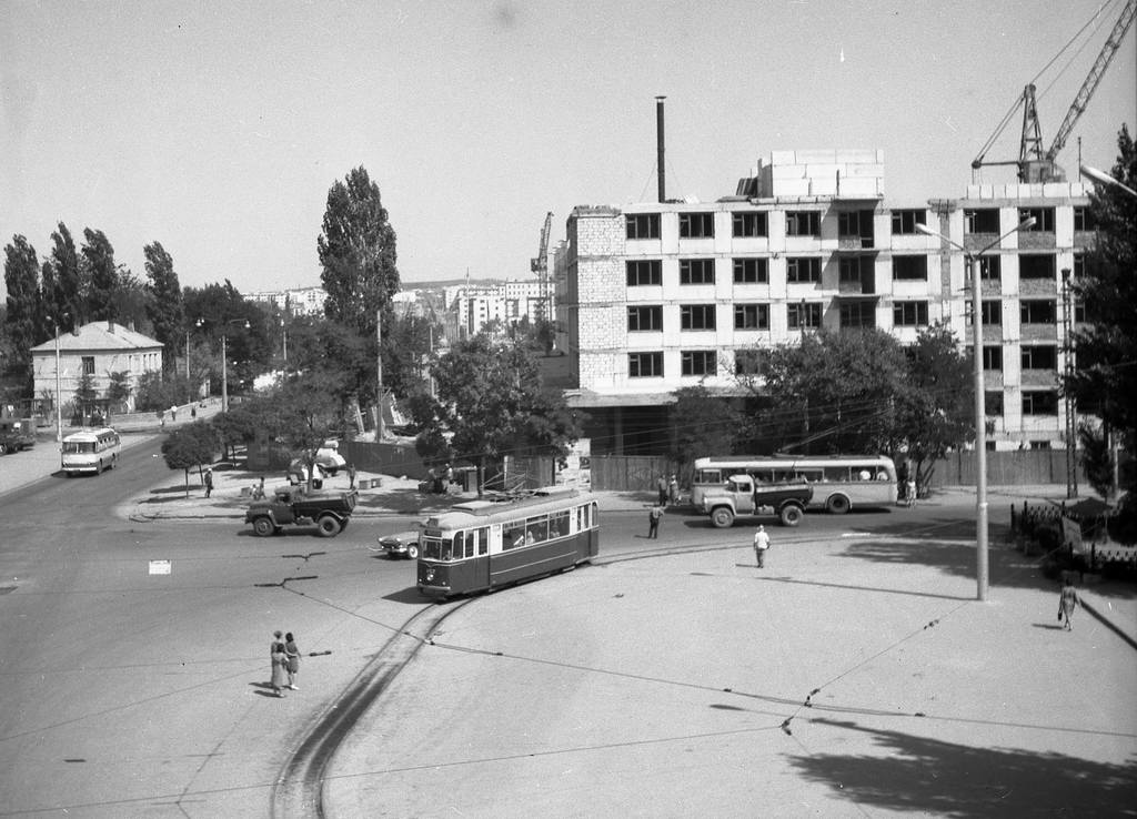 Трамвай на перекрестке проспекта Кирова и улицы Гоголя, 1958 г. (до реконструкции этого перекрестка)