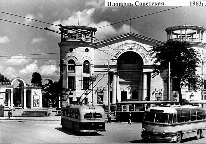 Трамвай и троллейбус Skoda 8Tr на площади Советской, 50-е года