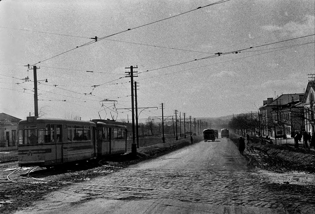 Трамваи на Феодосийском шоссе у Куйбышевского рынка