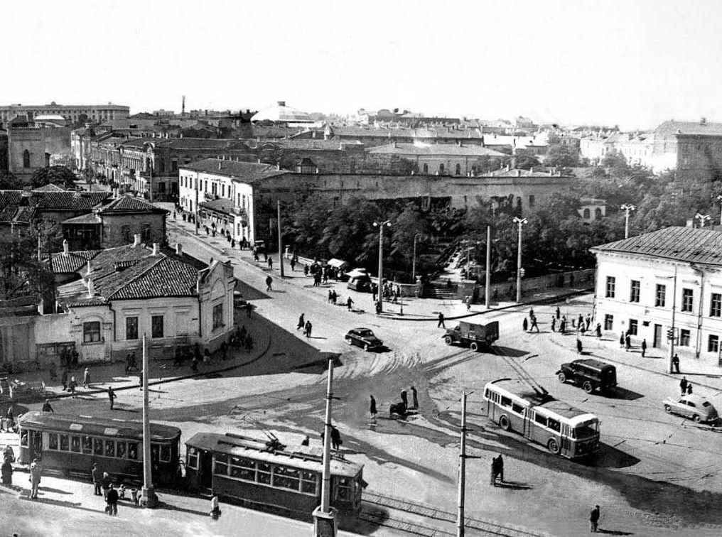 Трамвай на Советской площади, ул. Кирова (Салгирная) и Ленина (Лазаревская), 1950-е гг.