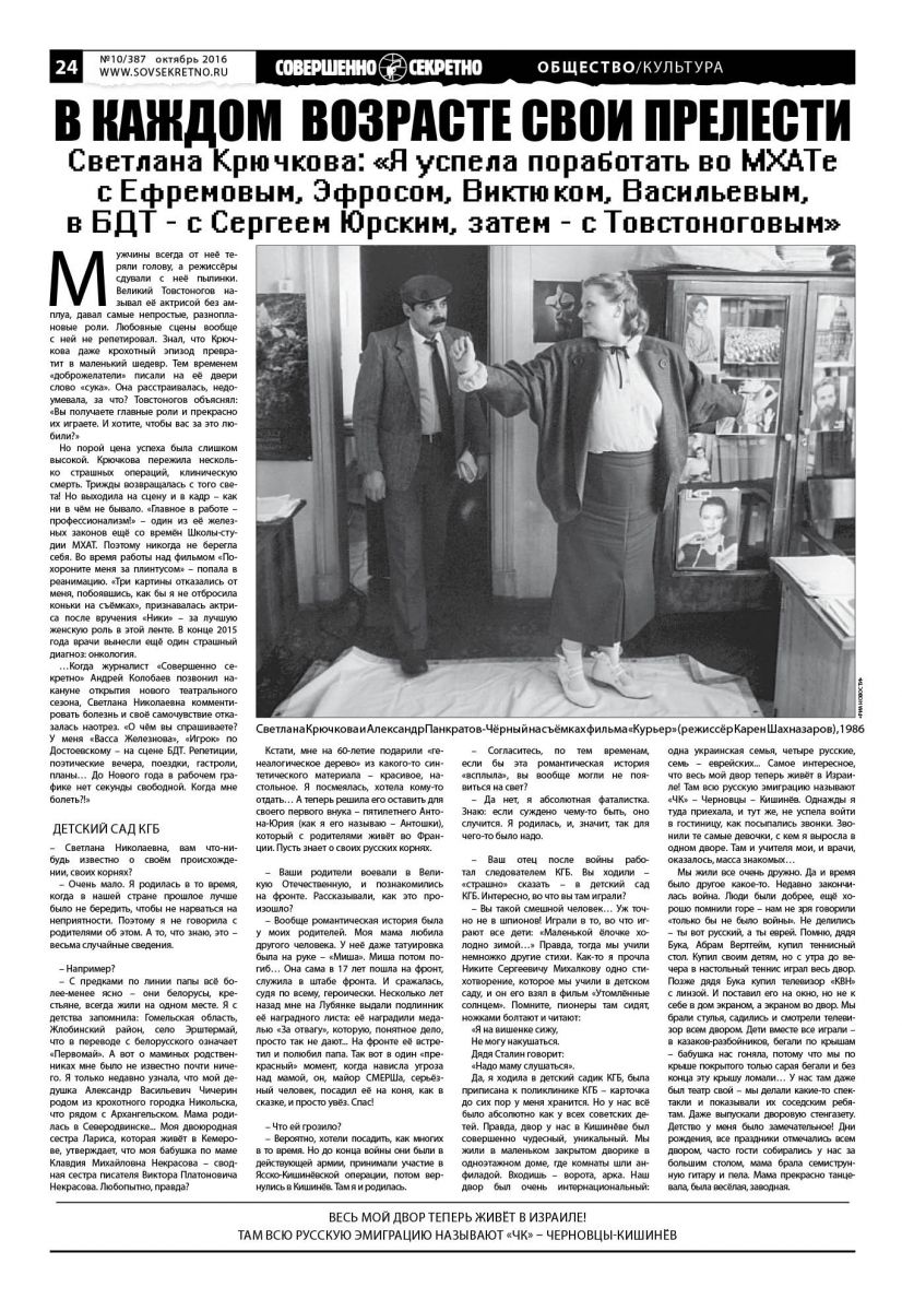 – Многие не понимают: как Крючковой удаётся одинаково ярко играть и императриц, и простых русских баб с нелёгкой судьбой…» А вы понимаете?