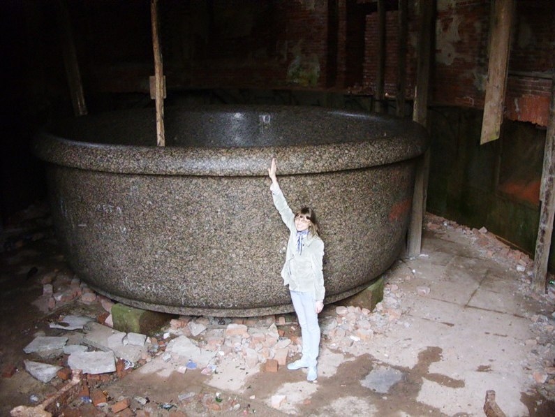 В Баболовском дворце Царского села можно увидеть самую большую ванну в мире. Она выдолблена из гранита, высота ее 1,96 м, диаметр — 5,33 м, толщина стенок — 45 см, а вес — 48 т! Сначала была создана эта гигантская ванна, лишь потом вокруг нее были возведены стены. К сожалению, сейчас здание находится в плачевном состоянии.