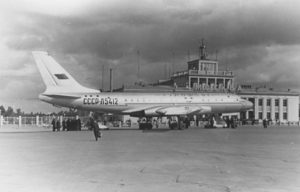В 1956 году на реактивном самолете Ту-104 из Внуково по маршруту Москва-Омск-Иркутск был выполнен первый пассажирский рейс, и тем самым положено начало «реактивной эры» в мировой гражданской авиации.