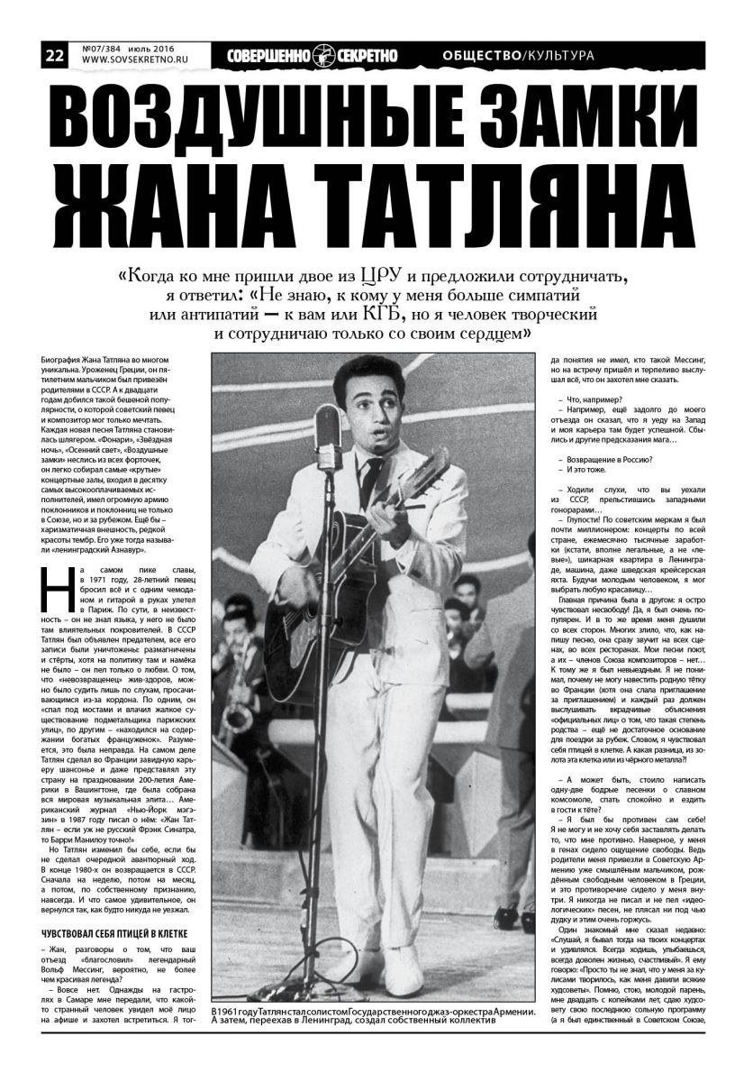 – Да, советские артисты ездили, но не так уж много, как могли ездить из такой огромной страны. В основном ездили те, кто умел подлизываться, кто взятки давал в Госконцерте… Я это всё знаю. Я знал людей совершенно бездарнейших, но они выезжали. Кстати, насчёт мюзик-холла ленинградского я вам расскажу очень интересный сюжет. В Ленинград приехал Бруно Кокатрикс, хозяин знаменитого парижского театра «Олимпия». Ему показали всю программу, лучшие номера. Но для выездных гастролей он не взял весь мюзик-холл, а только кордебалет и Эдиту Пьеху. Причём не как певицу, а как ведущую программы, умеющую говорить по-французски. Кокатрикс спросил: «Я могу послушать Жана Татляна? Я о нём столько слышал». «Что вы! – ответили ему, – Татлян на гастролях по Дальнему Востоку». Вместо меня ему предложили послушать Эдуарда Хиля, других партийных певцов. Он их забраковал, а взял Николая Сличенко, потому что старинные цыганские и русские романсы всегда имели успех на Западе. Обо всём этом я узнал потом и совершенно случайно от переводчицы Кокатрикса…