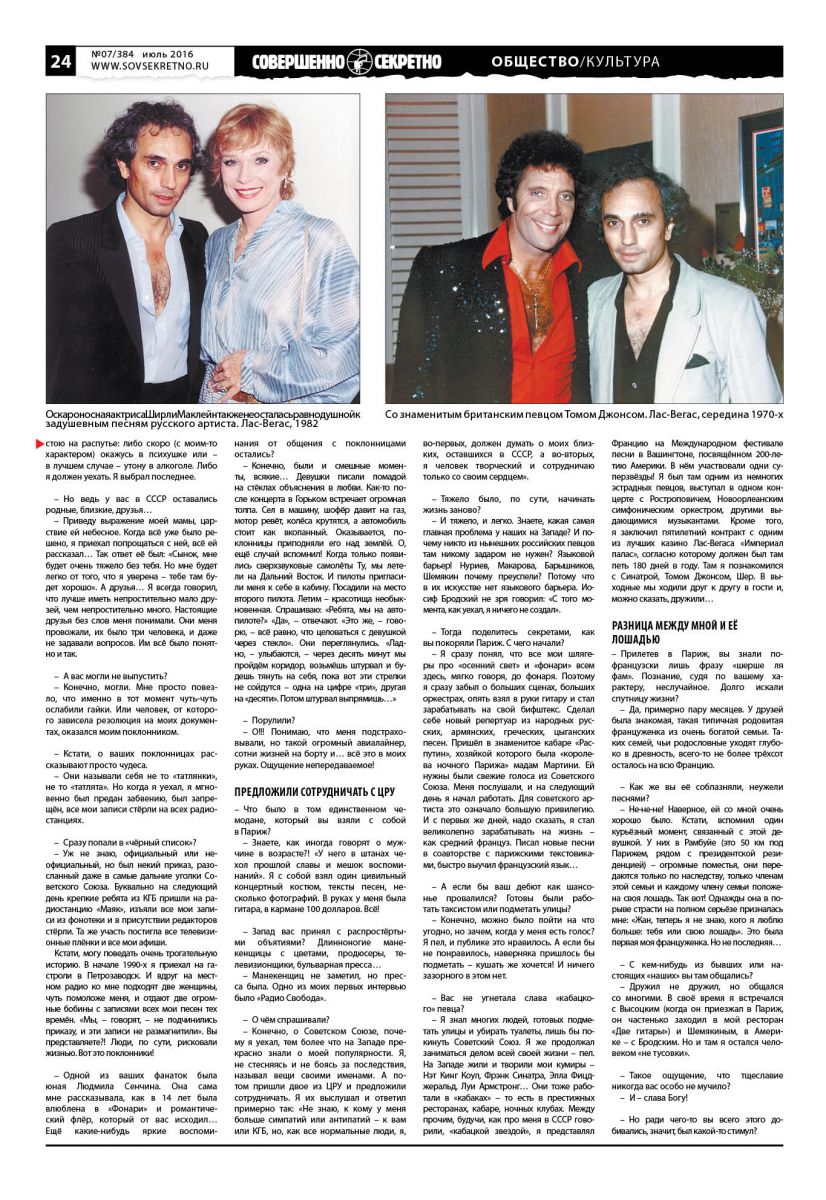 – Я знал многих людей, готовых подметать улицы и убирать туалеты, лишь бы покинуть Советский Союз. Я же продолжал заниматься делом всей своей жизни – пел. На Западе жили и творили мои кумиры – Нэт Кинг Коул, Фрэнк Синатра, Элла Фицджеральд, Луи Армстронг… Они тоже работали в «кабаках» – то есть в престижных ресторанах, кабаре, ночных клубах. Между прочим, будучи, как про меня в СССР говорили, «кабацкой звездой», я представлял Францию на Международном фестивале песни в Вашингтоне, посвящённом 200-летию Америки. В нём участвовали одни суперзвёзды! Я был там одним из немногих эстрадных певцов, выступал в одном концерте с Ростроповичем, Новоорлеанским симфоническим оркестром, другими выдающимися музыкантами. Кроме того, я заключил пятилетний контракт с одним из лучших казино Лас-Вегаса «Империал палас», согласно которому должен был там петь 180 дней в году. Там я познакомился с Синатрой, Томом Джонсом, Шер. В выходные мы ходили друг к другу в гости и, можно сказать, дружили…