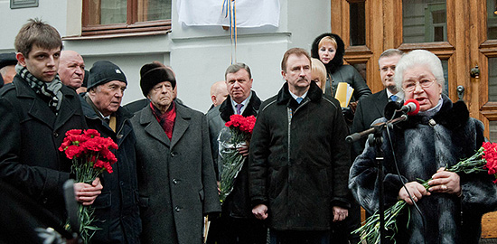 | Среди пришедших на митинг к дому, где жил Первый, были внук Щербицкого Юрий (крайний слева), друг семьи Борис Воскресенский, дважды экс-премьер Украины Виталий Масол, глава Киевской горгосадминистрации Александр Попов, вице-премьер-министр Александр Вилкул и председатель Президиума Верховного Совета УССР с 1985 по 1990 год Валентина Шевченко Фото Феликса РОЗЕНШТЕЙНА |