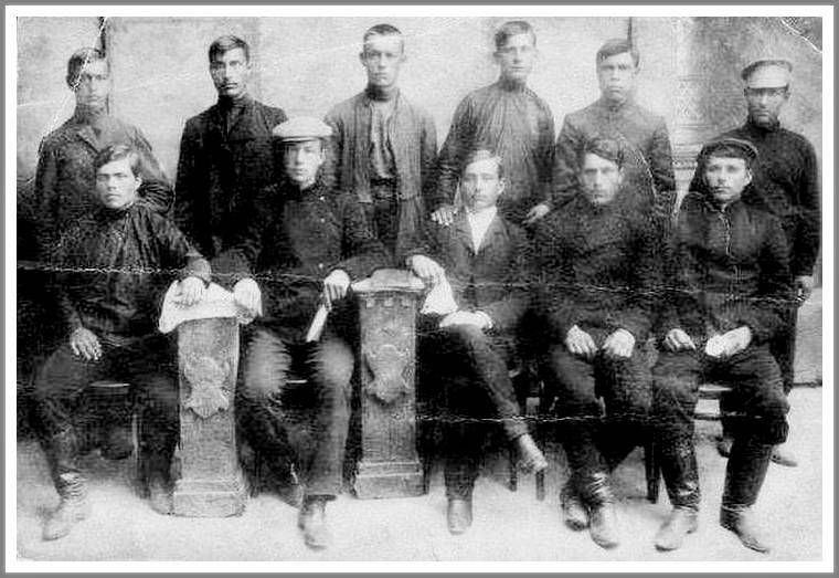 — Союз бедных хлеборобов: Сидят: Нестор Махно, Вольдемар Антони, Петр Онищенко, Егор Бондаренко, Иван Левадный. Стоят: Филипп Крат, Лука Кравченко, Иван Шевченко, Прокоп Семенюта, Лука Коростылев, Назар Зуйченко. Фото: 1907 год.