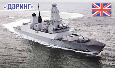 Шесть эсминцев «Дэринг» тип 45 строились с 2003 по 2013-й и в настоящее время все находятся в составе британского флота. От своего предшественника тип 42 существенно отличается на концептуальном уровне. Полное водоизмещение – около 8100 тонн. Энергетическая установка – два ГТД «Роллс-Ройс WR-21», два дизель-генератора и два электродвигателя суммарной мощностью 55 тысяч лошадиных сил. Максимальная скорость – около 29 узлов. Дальность хода 18-узловой скоростью – примерно семь тысяч миль. Вооружение носит оборонительный характер, что соответствует главному предназначению этих эсминцев – ПВО корабельных соединений. В этой связи наиболее развитой подсистемой эсминца «Дэринг» является именно его ПВО. Ее основу составляет ЗРК PAAMS совместной разработки с Францией и Италией. Британская версия отличается от франко-итальянской применением новейшего радара Sampson. Эсминец располагает одной пусковой установкой Sylver A50 на 48 ячеек для Aster 15 с дальностью стрельбы до 30 километров и Aster 30 большого радиуса действия – до 120 километров. Обе ракеты имеют комбинированную систему наведения, включающую инерциальную с радиокомандной коррекцией курса по сигналам РЛС Sampson на маршевом участке полета и активную ГСН на завершающем, что позволяет применять эти ракеты для поражения СВН за пределами радиогоризонта, однако только по данным внешних источников целеуказания. Эти ЗУР универсальны. В определенных условиях они могут быть использованы для поражения надводных целей. Для уничтожения СВН в зоне самообороны корабль имеет две одноствольные 30-мм АУ DS-30B «Эрликон» и две шестиствольные 20-мм АУ «Вулкан-Фаланкс» американского производства. Обнаружение воздушных целей осуществляется с применением РЛС с активной ФАР S1850, расположенной на кормовой мачте. РЛС обеспечивает обнаружение и одновременное отслеживание до тысячи целей на дистанции до 400 километров. Наведение зенитных ракет выполняется с помощью РЛС Sampson на носовой мачте эсминца. За счет высокого расположения антенны Sampson обладает большой дальностью обнаружения низколетящих целей, значительно превосходя в этом отношении американский «Иджис». Одновременно обеспечивается выдача целеуказания по 16 объектам. Противолодочное вооружение представлено мощным сонаром MFS-7000 с антенной в носовом обтекателе, но собственных бортовых средств поражения субмарин корабль не имеет. Их уничтожение возлагается на палубные вертолеты. Ангар корабля позволяет обеспечить базирование одного большого Merlin или двух легких Linx. Эти вертолеты располагают ОГАС, РГАБ, противолодочными торпедами Stingray. Кроме того, способны наносить удары по легким силам флота ракетами Sea Skua (дозвуковые, дальность стрельбы – 25 км, вес боевой части – 35 кг). Эсминцы оснащены системой противоторпедной обороны SSTD. Помимо огневых средств ПВО имеют высокоэффективный комплекс РЭБ – пусковые установки для различных типов ложных целей и имитаторов и активные станции постановки помех Mk.251. Для поражения надводных и наземных целей, а также СВН эсминец располагает одной 114-мм АУ BAE Systems Mark 8. Дальность стрельбы – до 22 километров, скорострельность – 22–26 выстрелов в минуту. Боекомплект – 800 снарядов.